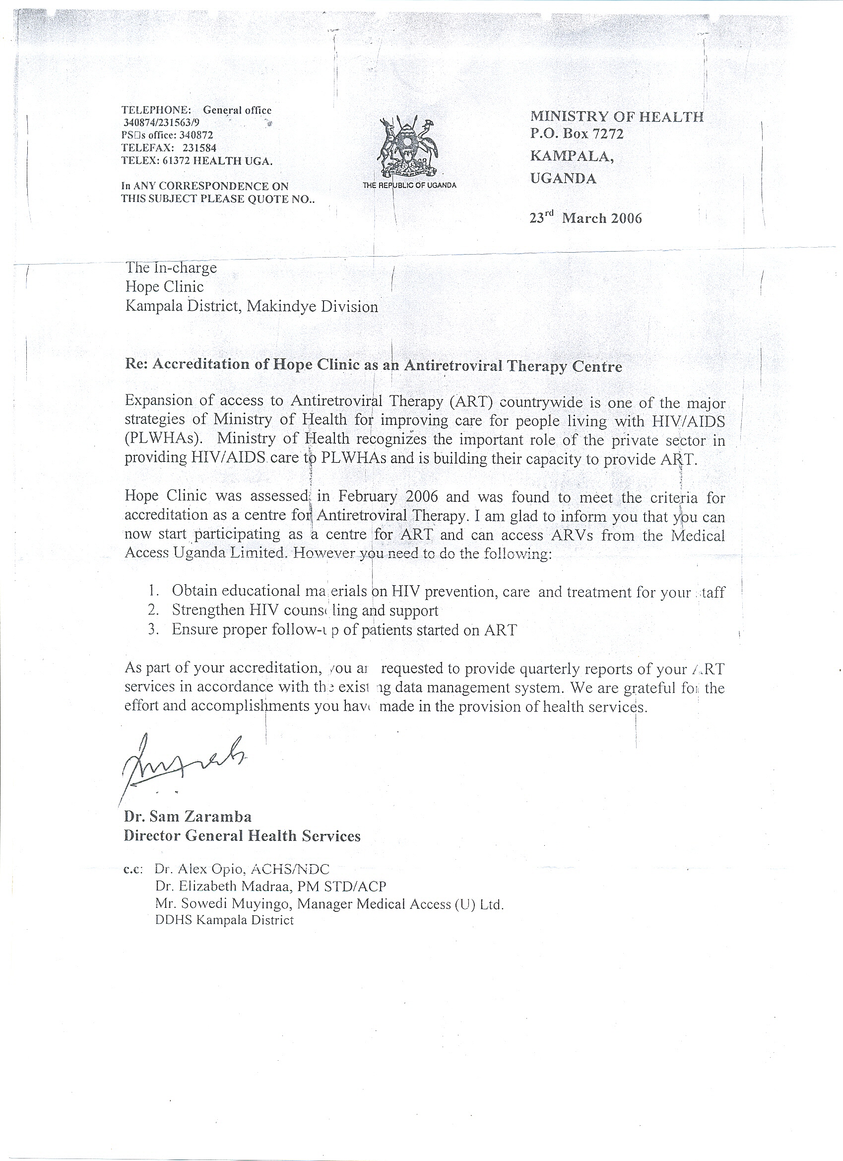 of Health accredited Anti-Retroviral Therapy site