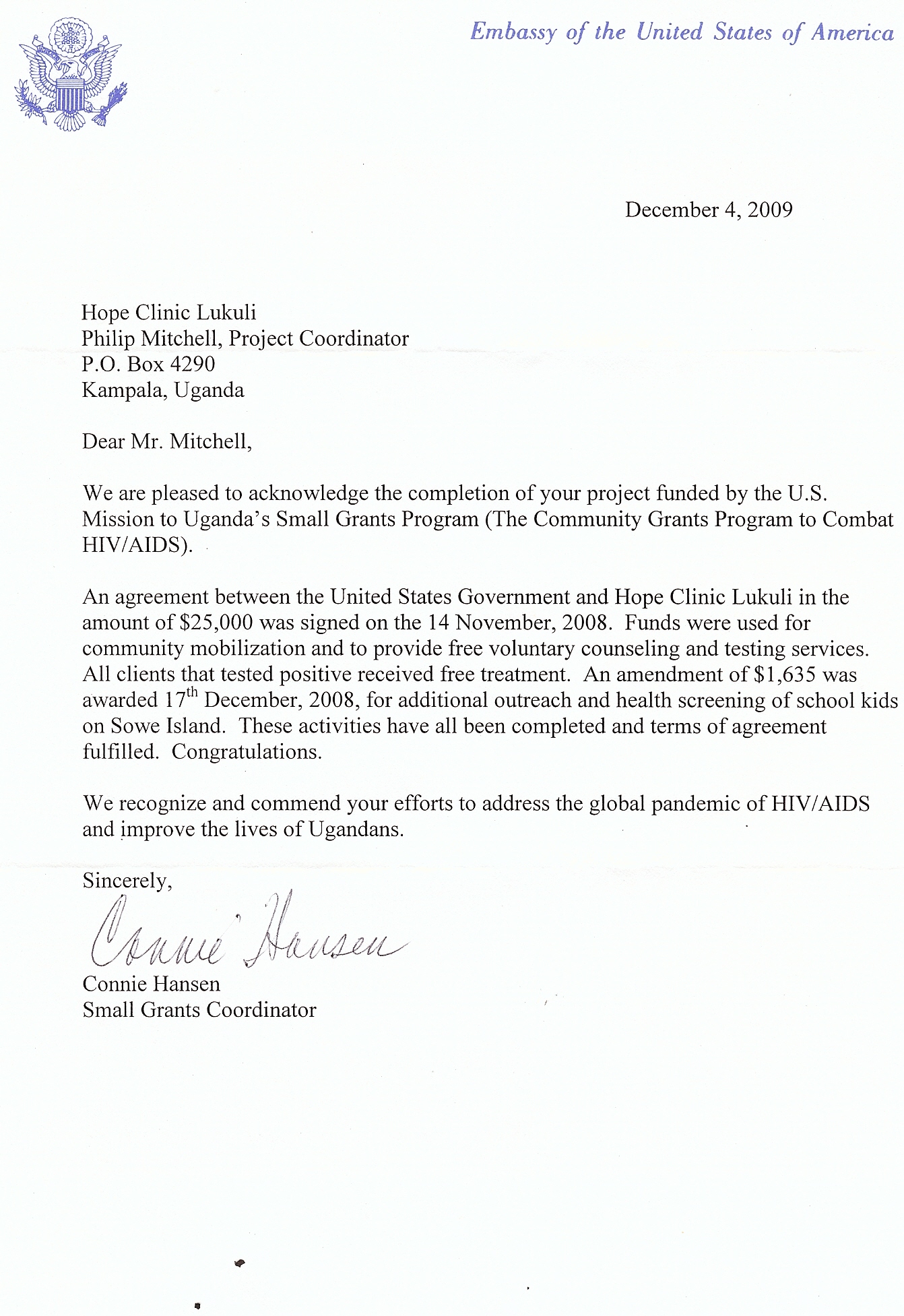 grants. PEPFAR in Uganda